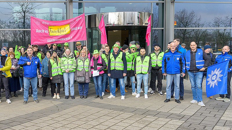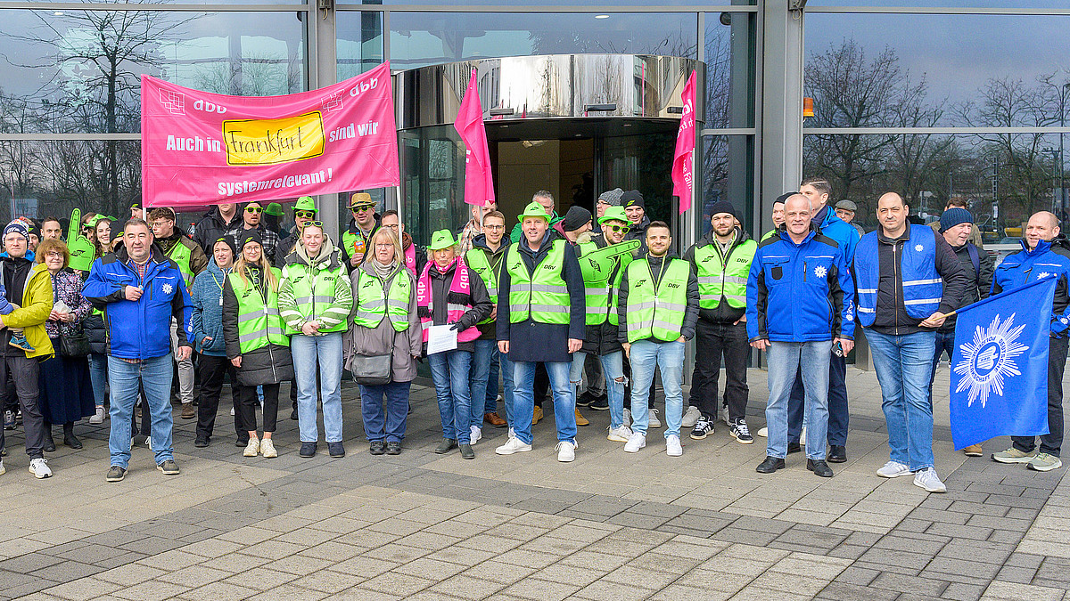 Beschäftigte von Zoll und Bundespolizei haben sich in ihrer Mittagspause vor dem Frankfurter Hauptzollamt lautstark für höhere Einkommen und bessere Arbeitsbedingungen eingesetzt.