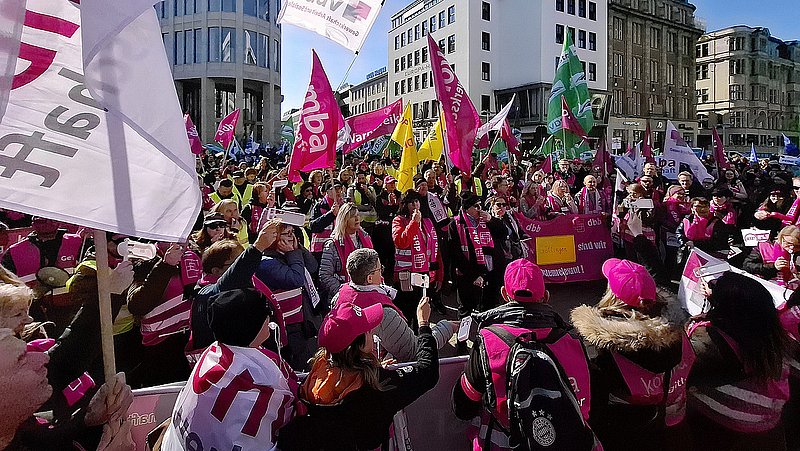 Bei einer Demonstration am 4. März 2025 in Hannover machten über 1200 Beschäftigte des öffentlichen Diensts ihrem Frust über die Haltung der Arbeitgebenden Luft.